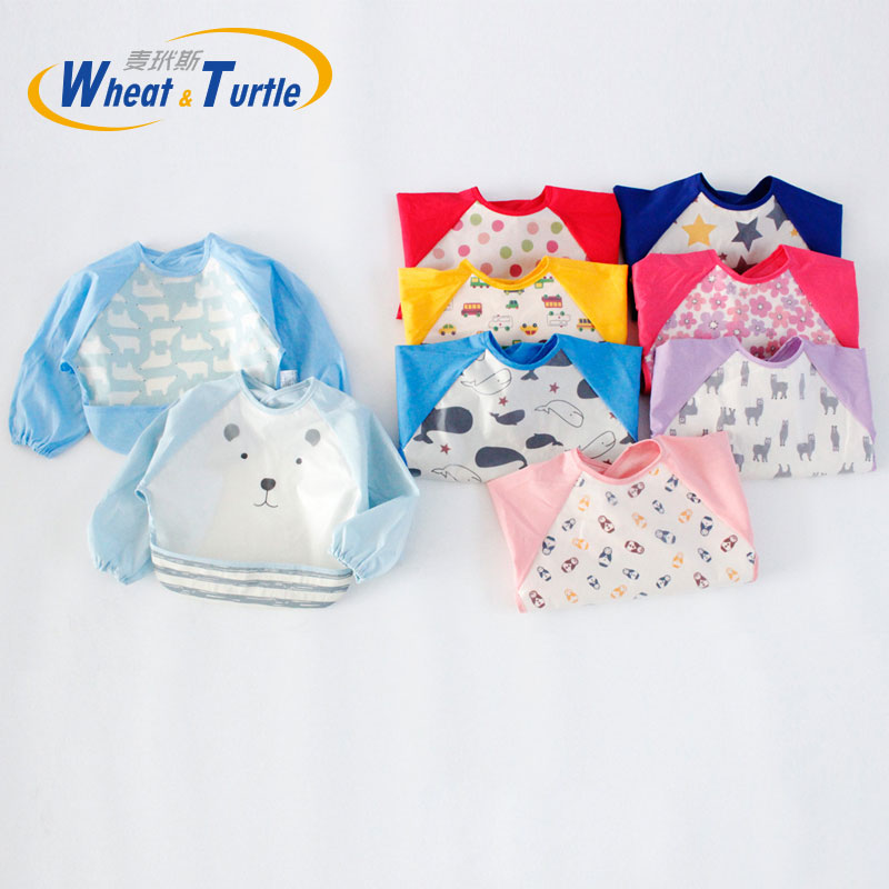 Cute Baby Bibs Short Sleeve Children Apron Waterproof Washable Clothing For Kids Baby Feeding Bibs