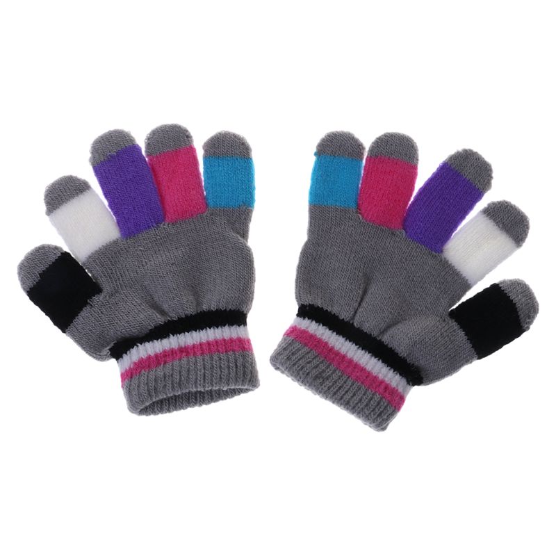 1 Pair Bambini Guanti Guanti Pieni Della Barretta Caldo di Inverno Dei Bambini Colorato Della Banda Lavorato A Maglia Delle Ragazze Dei Ragazzi Solido Guanto Multi Colore