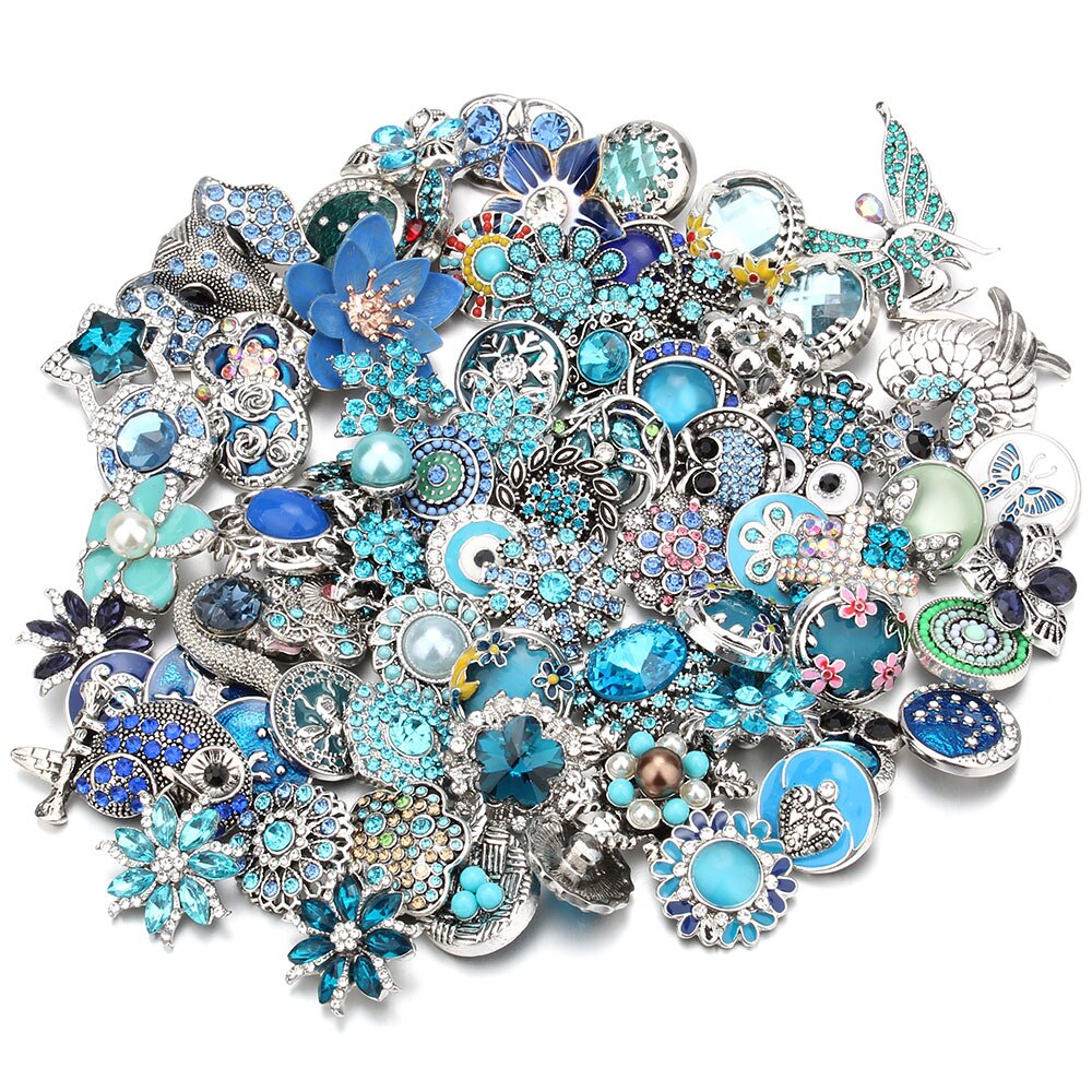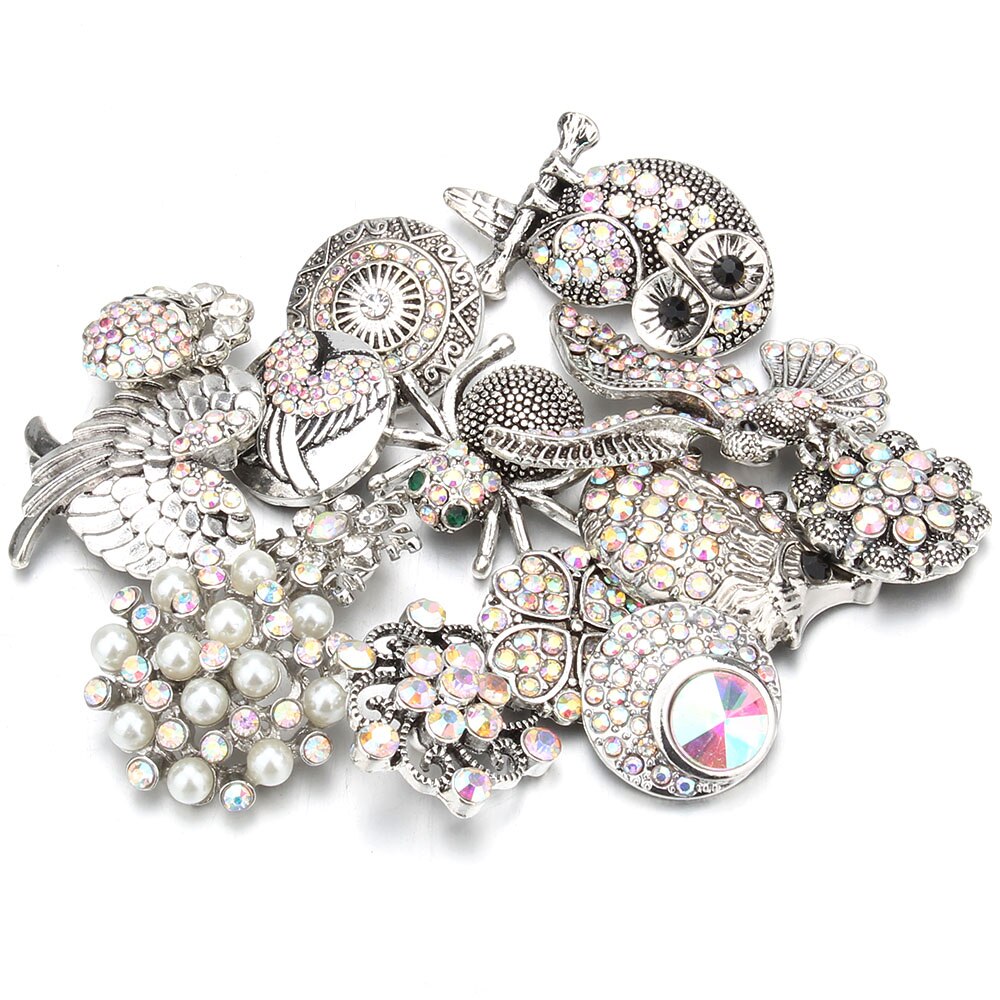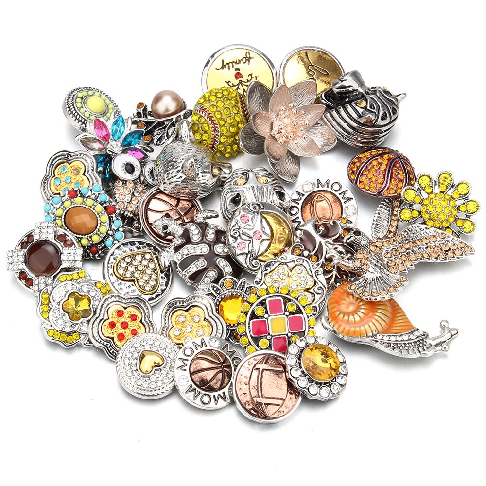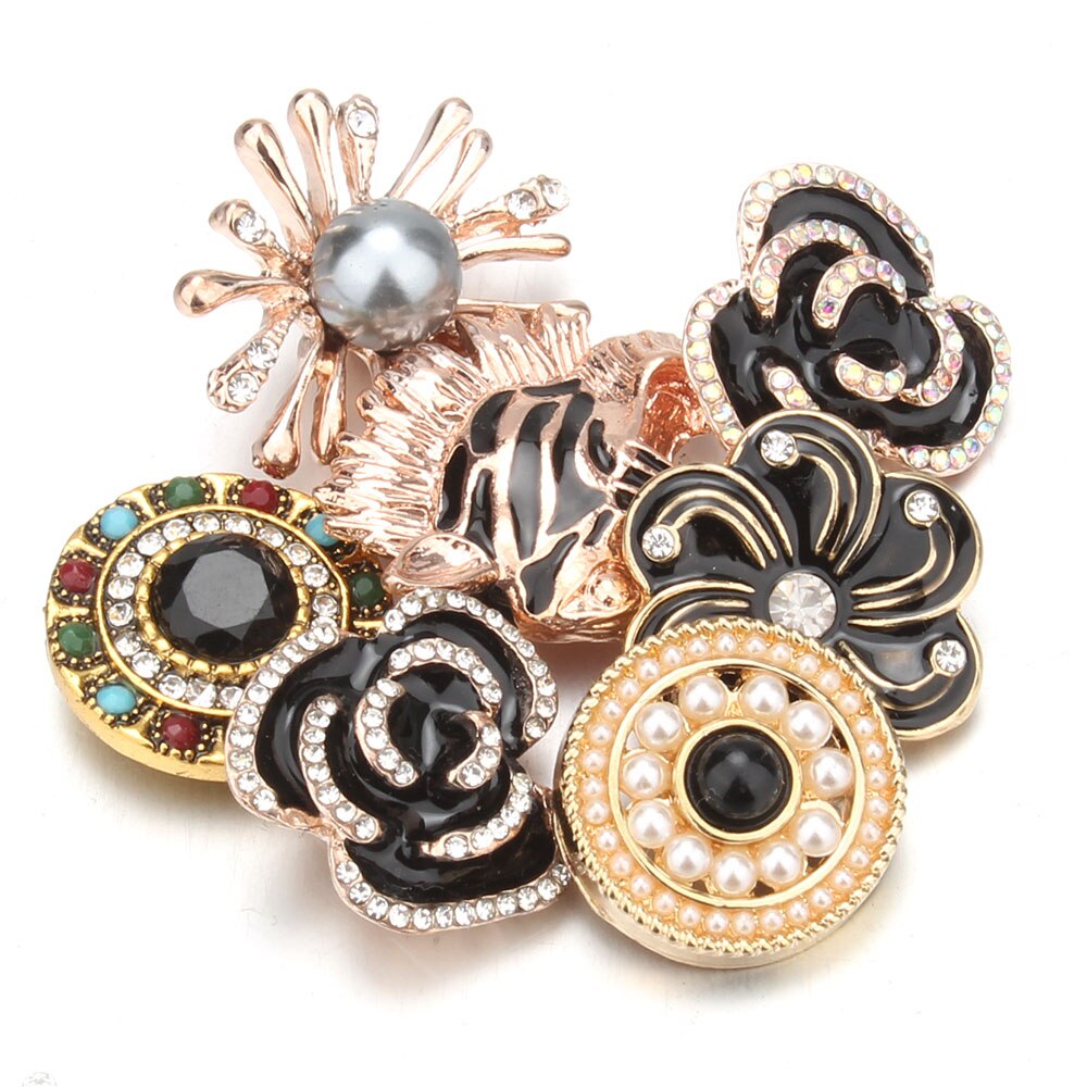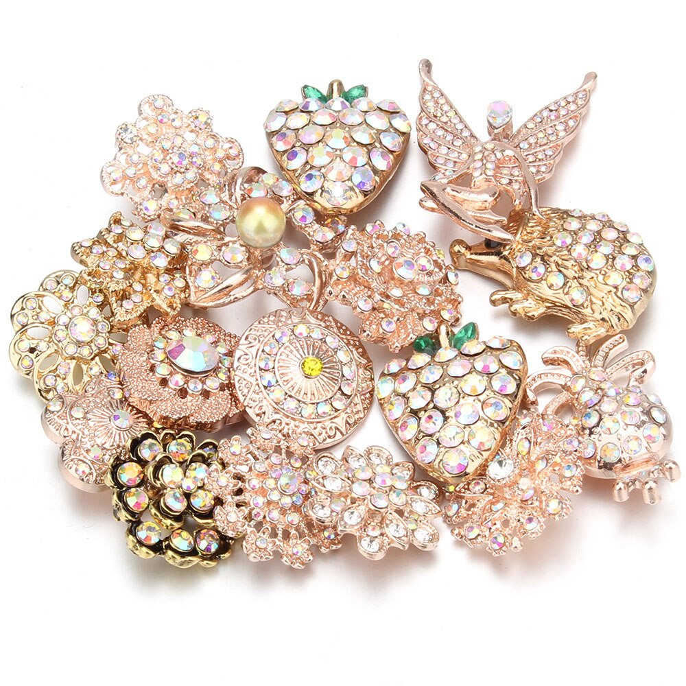 10 pz/lotto all'ingrosso Snap gioielli MIX metallo scatta strass fiore 18mm bottoni a pressione misura in pelle Snap braccialetto del braccialetto