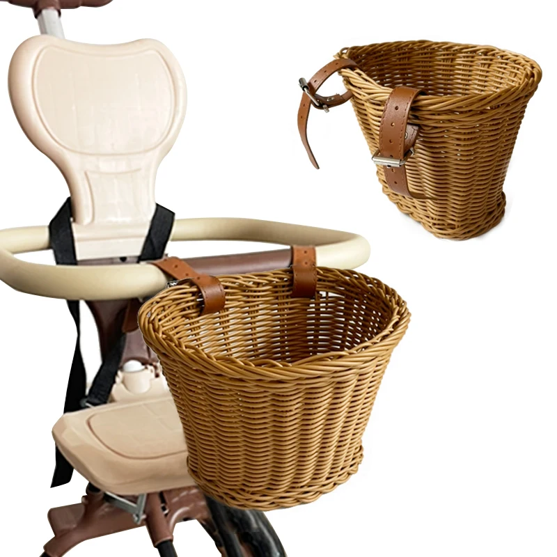 Cestino portaoggetti fatto a mano durevole e impermeabile Borsa per bagagli staccabile Cestino anteriore per passeggino per borsa in rattan intrecciato per scooter da bici per bambini