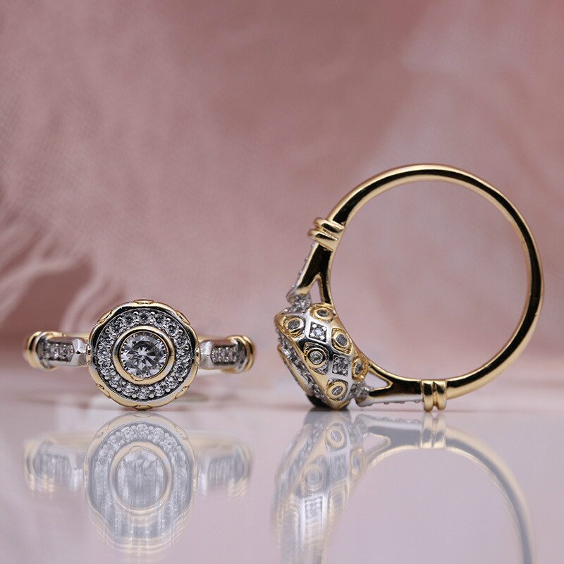 Creativo Vintage Moda Rotonda A Forma di Anelli di Cerimonia Nuziale per Le Donne di Cristallo Oro Antico Anelli di Fidanzamento Turco Gioielli Retrò