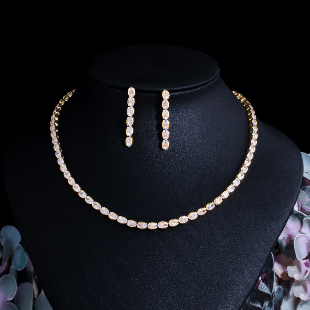 Cwwzirconi Top ovale Cubic Zirconia Party Prom collana e orecchini spose set di gioielli per accessori da damigella d'onore T549