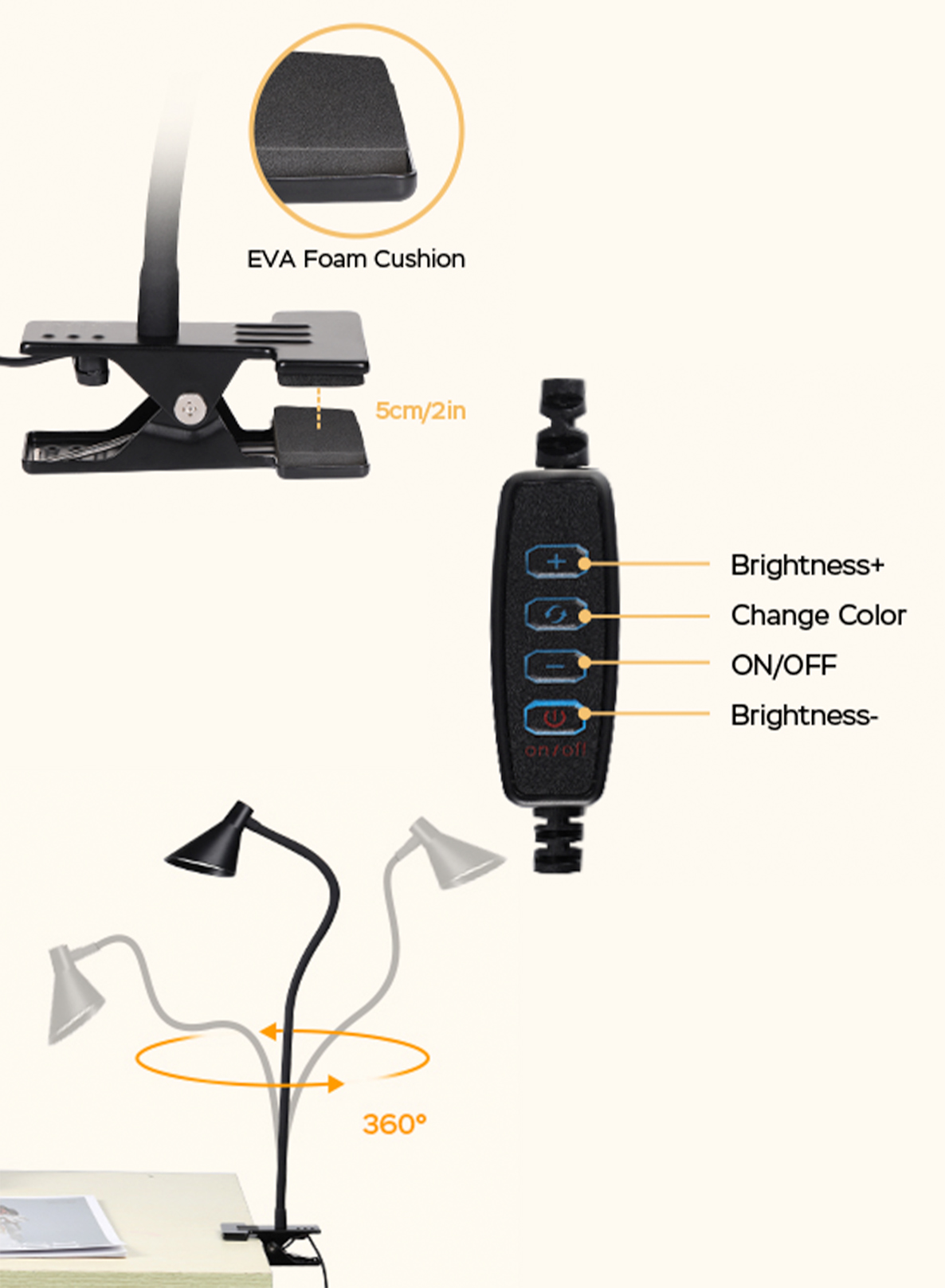 Lampada da lettura, lampada con morsetto USB per bambini che legge il libro a letto di notte, piccola lampada da scrivania a LED con clip a collo di cigno regolabile